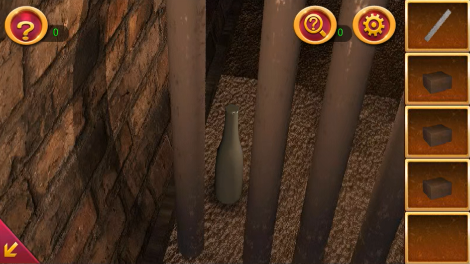 通关的关键在于系统性地收集场景中的全部可用物品并进行组合使用。首先进入第三关的房间后,你需要仔细探索环境,将散落在地上的三个木块、墙壁上的酒瓶以及插在墙上的火把全部收集起来。点击已放入物品栏的酒瓶,会从中获得一张画有特定方格图案的纸条,这份