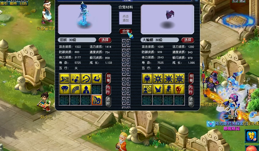 大蝙蝠虽然只是个参战等级5级的低级召唤兽,但因为在大雁塔六层才能抓到,加上造型比较个性,所以一直有不少玩家喜欢去合多技能甚至带特殊技能的大蝙蝠,把它练成高等级的个性宠来用。合蝙蝠的第一步当然是准备材料,你得先抓两只大蝙蝠宝宝,或者用金柳露洗