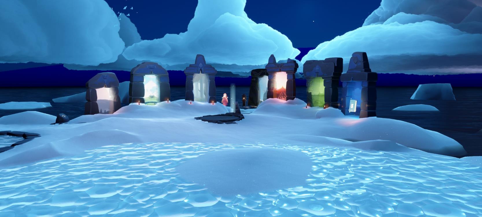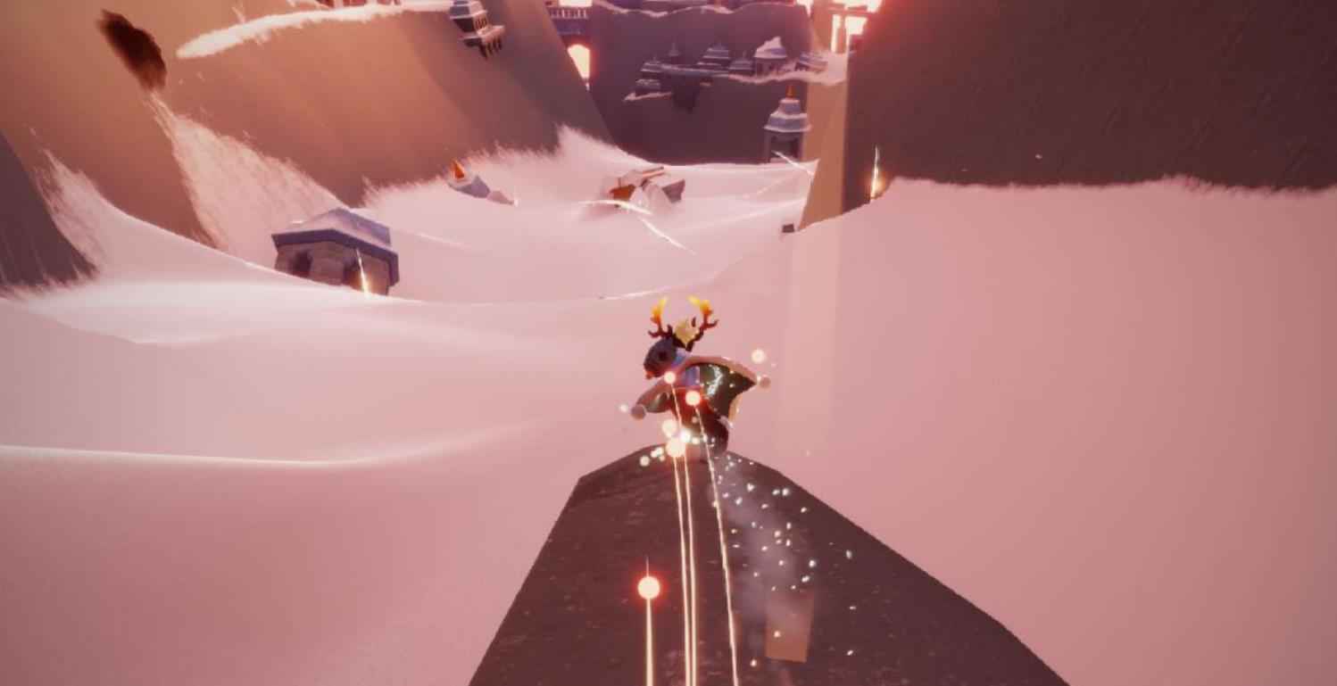 滑冰竞技场任务需要先进入霞谷地图,通过右侧山洞抵达圆梦村区域。溜冰场就在圆梦村中心位置,竞技场大门需要多人协作点燃心火才能开启。如果独自前往可能会遇到点火困难,建议提前约好友同行或等待其他玩家协助。进入竞技场后注意观察右侧高台,冥想点和先祖
