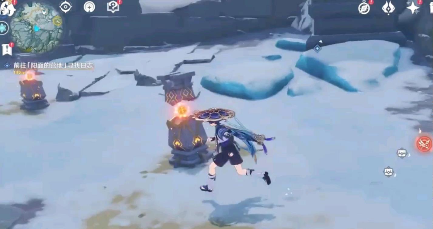雪山踏板的解密关键在于观察墙面符文与地面踏板的对应关系。来到龙脊雪山最西侧靠近地中之盐的区域,能看到七个显露的石板和一个被冰块覆盖的隐藏石板。先击败附近的深渊法师获取深赤之石,用它击碎冰块就能解锁第八块石板。注意对面墙壁上有两组不同符号,每