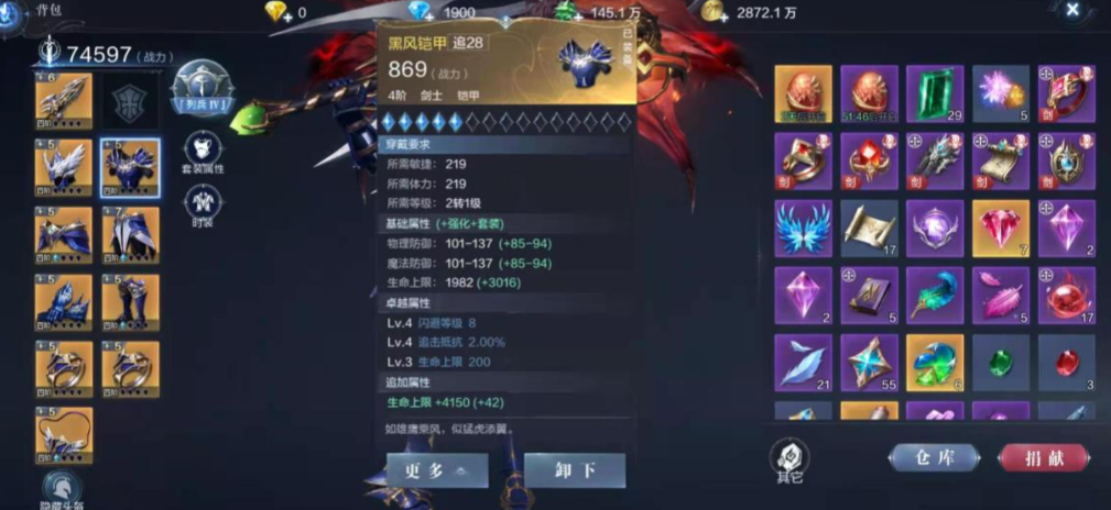 翎羽的选择直接关系到战斗力的提升方向。翎羽需要通过收集中级翎羽碎片和高级幻翎碎片来兑换,每个翅膀最多能装备四个翎羽。最关键的是,装上相同类型的翎羽能触发额外的套装效果,比如凑齐四个高级幸运天赐翎羽,在释放技能时就有几率进入强力状态,短时间内