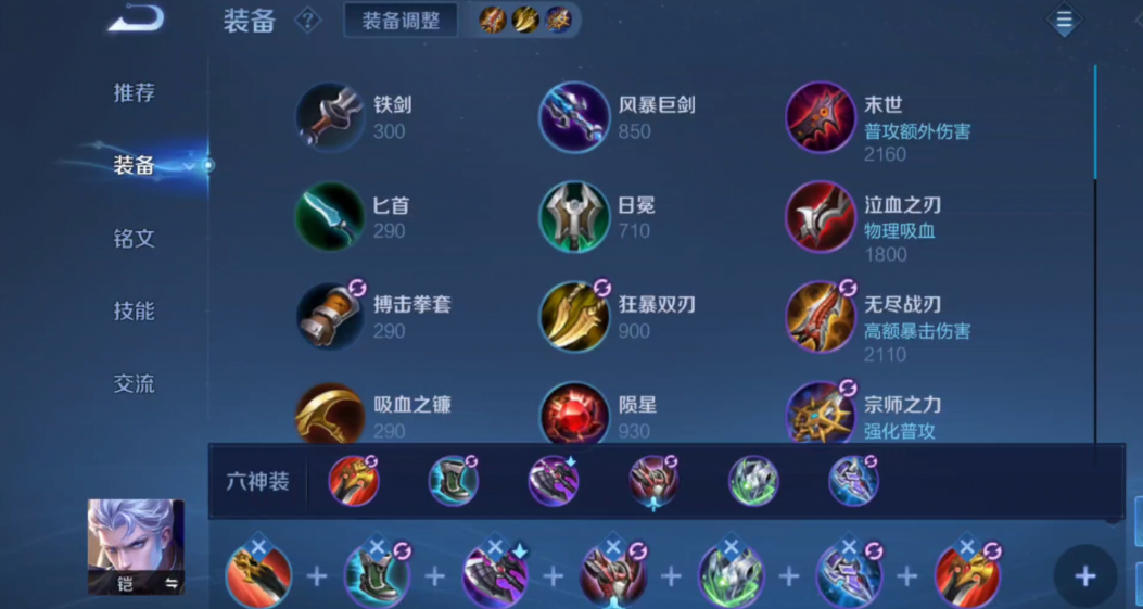 凯的最强出装策略需要兼顾生存能力和爆发输出,核心装备组合包括抵抗之靴、暗影战斧、极寒风暴、宗师之力、无尽战刃和暴烈之甲或名刀司命。这套出装基于凯的技能特性设计,被动效果在单体目标时造成额外伤害,一技能提供减速和回复,二技能强化普攻,三技能大