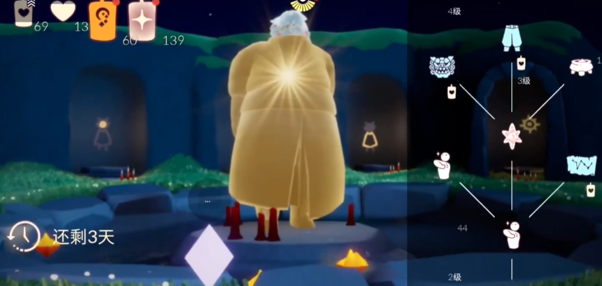 咱们想拿到狮子面具的话,得先找到预言季的火之先祖。这位先祖藏在晨岛的预言山谷里,穿过云洞后顺着梯子往上走,很快就能看到标记着狮子图案的山洞。点亮先祖并收集完所有回忆片段后,就能用55根白蜡烛兑换面具啦。兑换完整套先祖物品总共需要202根蜡烛