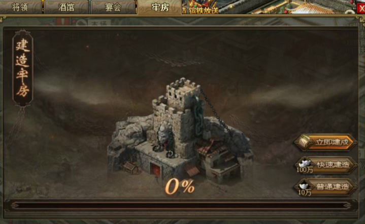 牢房系统是提升经验获取效率的核心建筑,需在主城达到81级并击败特定武将后解锁。初始需通过点券商城购买一级牢房图纸开启功能,后续每级升级均需消耗递增点券。该系统核心价值在于通过关押俘虏并执行鞭挞操作获取稳定经验收益,同时高等级牢房可显著提高抓