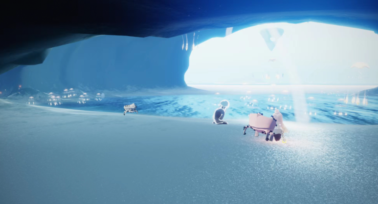 圣岛季螃蟹洞先祖位于云野右侧隐藏区域的核心位置,需从主岛两条瀑布所在浮岛的正下方洞穴进入。该洞穴入口处密集分布着主动攻击型螃蟹,洞口呈现明显的凹陷地形特征且伴有深色植被覆盖,识别时需注意规避环绕洞穴巡逻的发光水母群。进入前务必确保光翼能量不