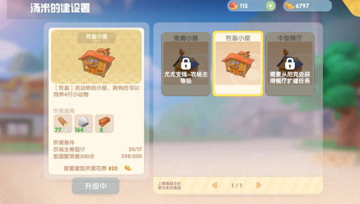 修缮牧场是开启养殖功能的关键步骤,玩家需要先达到农场主等级要求,通常为14级或18级,具体取决于游戏设定;达到等级后,前往阳光牧场找到NPC尤尤对话,选择修复禽舍或畜棚任务,尤尤会指引玩家联系工程师汤米进行后续操作,这一步是触发修缮的起点,