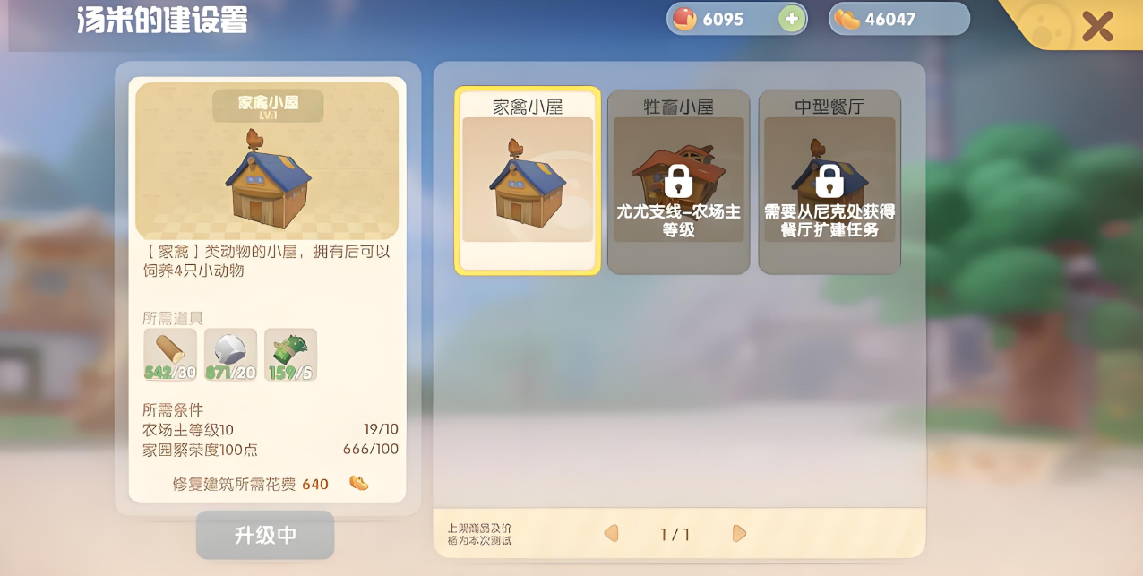 饲养鸡鸭需要先解锁家禽小屋功能。当农场主等级达到14级后,可以找NPC汤米接取修复禽舍的任务,完成建造后即可开启牧场养殖系统。禽舍修复需要一天时间,完成后前往尤尤的牧场商店购买鸡鸭幼崽,通过动物仓库功能将幼崽放入禽舍即可开始饲养。每个禽舍最