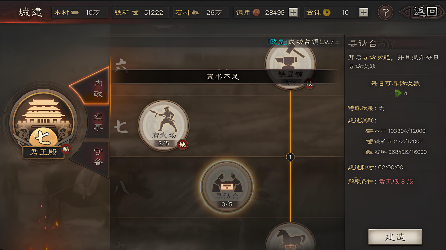 锻造材料是打造高品质装备的基础资源,主要通过讨伐贼寇、寻访系统、资源地占领以及特殊活动获取。讨伐8级及以上贼寇是获取高级材料的主要途径,击败9级和10级贼寇则必定掉落橙色装备所需的稀有材料。寻访台每日20次寻访机会也有概率获得锻造材料或设计