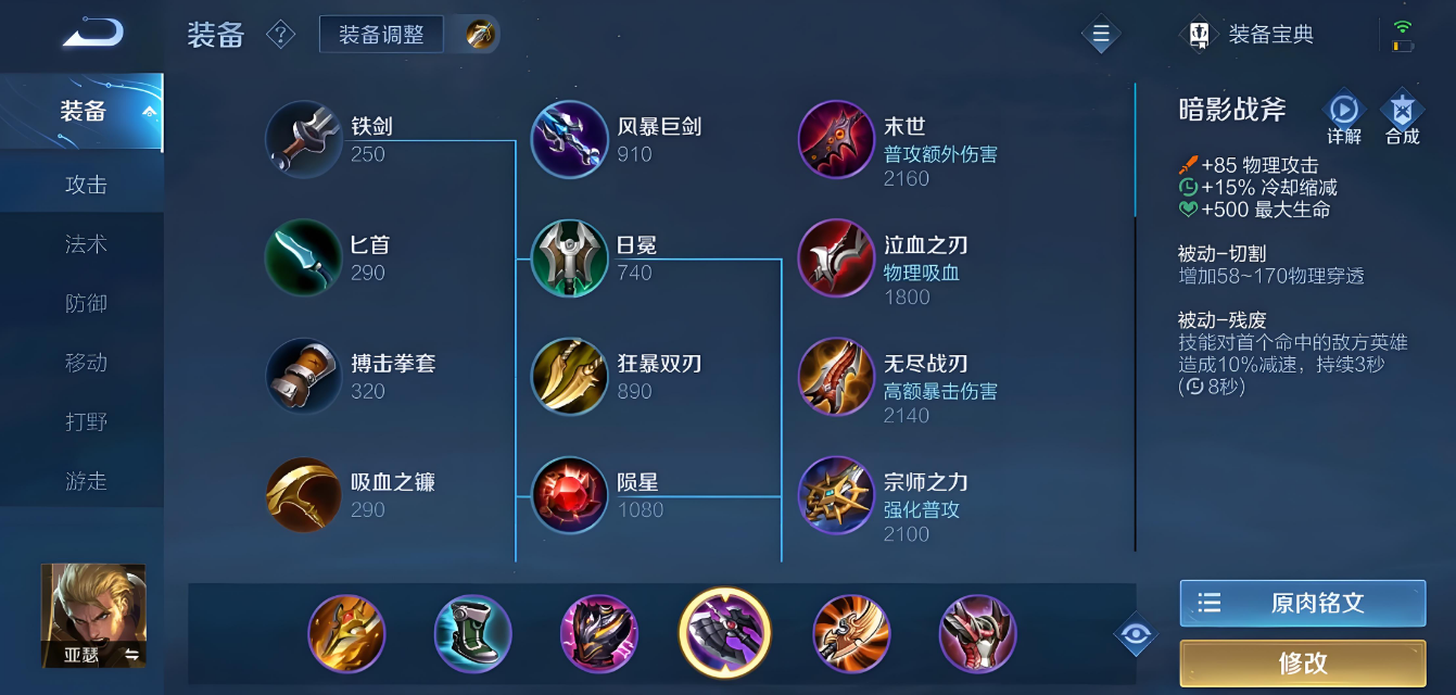 光信作为王者荣耀中高爆发的战士英雄,合理的出装能让你在战场上打出成吨伤害。光信的核心装备以冷却缩减、物理穿透和攻击力为主,主要依赖技能输出,因此冷静之靴、暗影战斧、破军这三件装备是必出的。冷静鞋可以减少技能冷却时间,让技能释放更加频繁;暗影