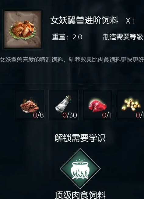 女妖作为黑暗与光明手游中后期的重要战斗生物,其驯养核心在于特定饲料的制备。基础肉食饲料需包含熟肉、水珠、骨粉及油脂四大成分。熟肉由生肉经烹饪台加工获得,生肉可通过击杀动物或狼类宠物采集尸体获取;水珠需用水袋或空瓶装水后分解;骨粉由研磨器处理
