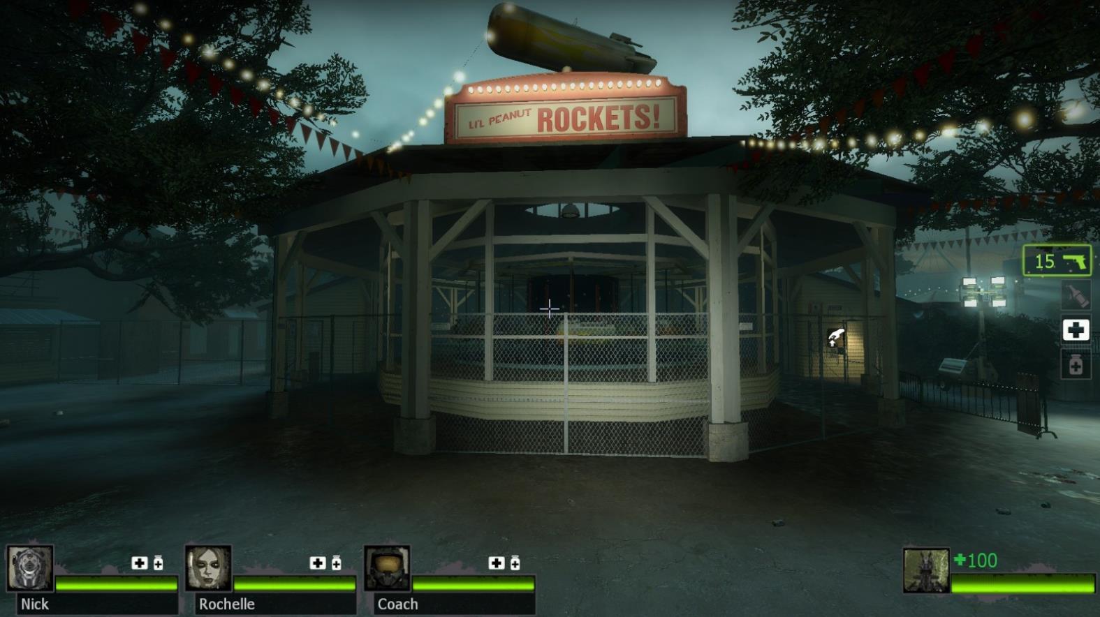 从安全屋出发后左转直行,穿过游乐场入口的铁栅栏,沿途需注意两侧建筑物内可能埋伏的特殊感染者。这一区域地形较为开阔,建议队伍保持紧凑队形,避免分散行动被逐个击破。主路径会引导玩家经过旋转木马和碰碰车区域,这些娱乐设施附近容易刷新丧尸潮,建议提