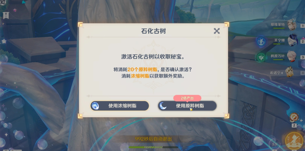 树脂是玩家进行资源获取的核心机制之一,它代表一种体力系统,用于解锁和领取各种挑战的奖励。玩家在探索大地图时,右上角会显示树脂图标,它随时间缓慢恢复,但储存有上限,达到上限后不再增加。树脂的主要作用是激活地脉之花或秘境终点的石化古树,从而获得