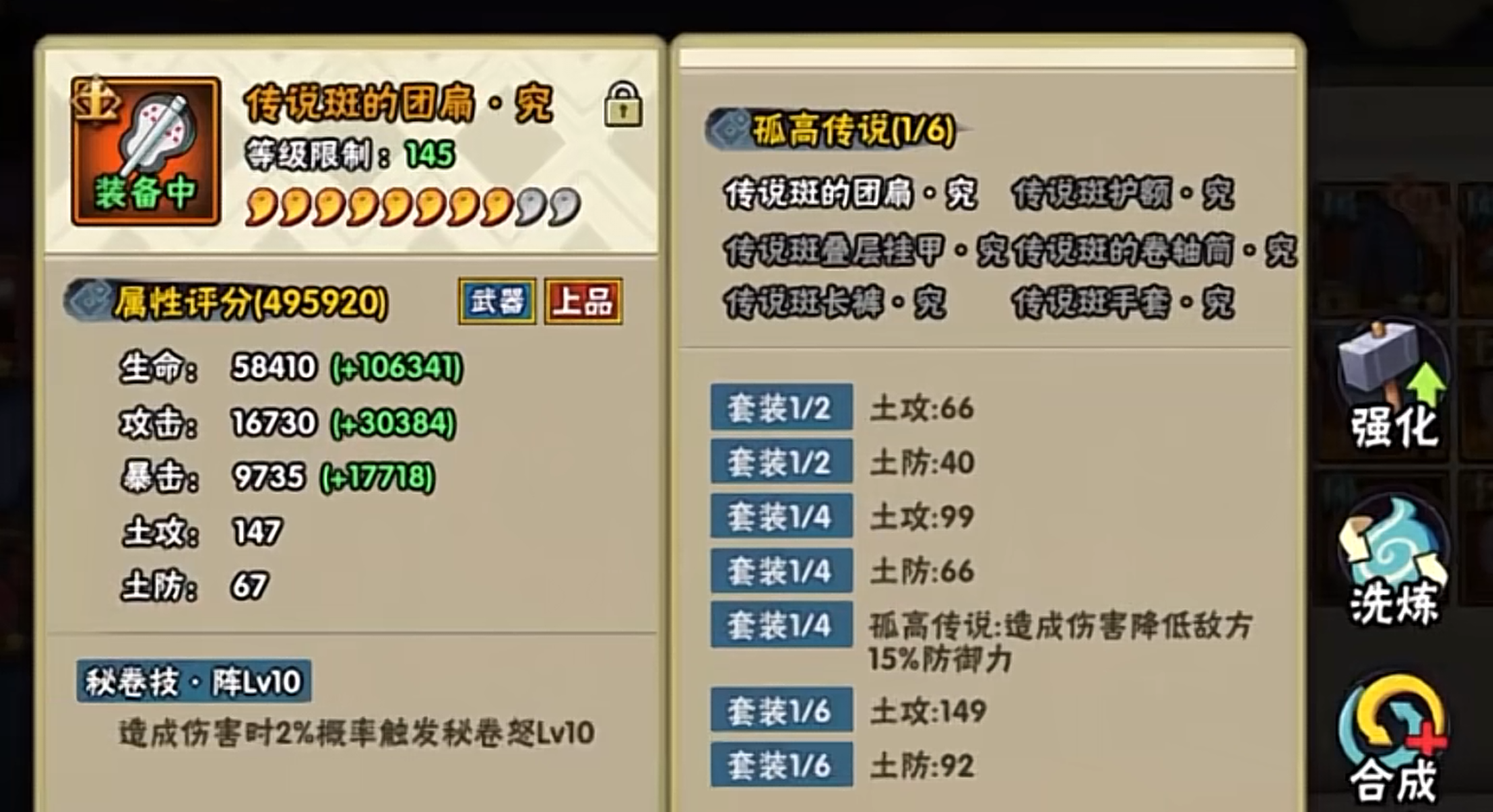 忍具系统是90级后开启的核心战力提升途径,其品质分为绿色普通、蓝色优秀、紫色精良、橙色传说四档,其中橙色传说忍具包含普通套装和究极忍具两类。忍具分为六个部位:武具、护额、上衣、下装、配饰和道具,每个部位的属性加成各有侧重。优先选择同元素属性