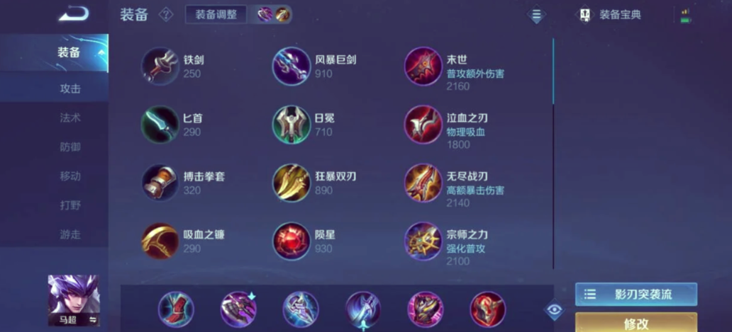 肉马超的核心出装推荐为冷静之靴、暗影战斧、宗师之力、不祥征兆、不死鸟之眼和名刀·司命,这套半肉输出装兼顾伤害与生存能力,能有效提升马超在战场上的持续作战表现。铭文搭配上,狩猎铭文是首选,它提供攻速和移速加成,强化马超的机动性和技能衔接效果,